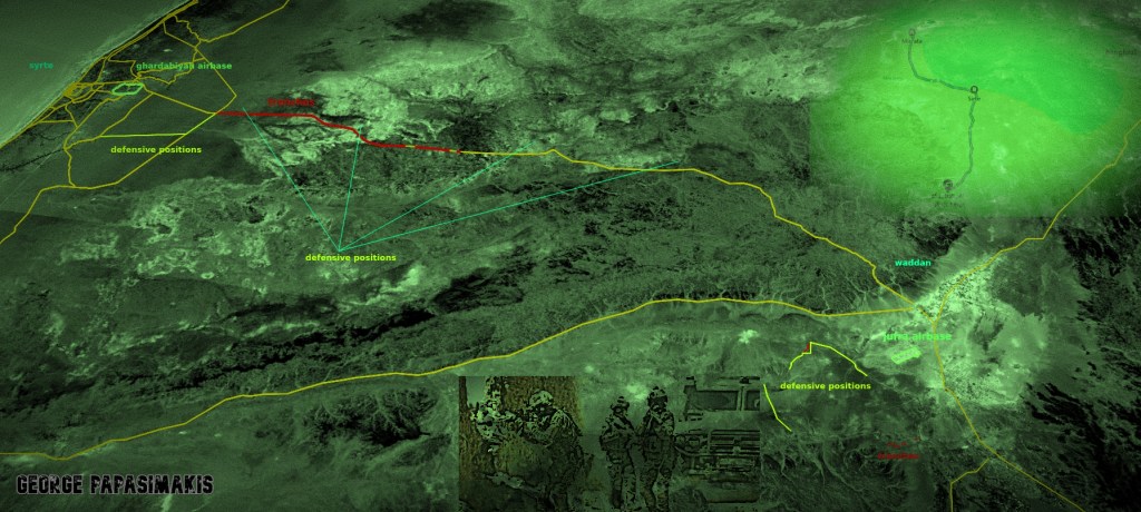 Δορυφορικές πλατφόρμες ανοιχτού κώδικα λένε ότι έχουν εντοπίσει μια σειρά από περισσότερες από 30 αμυντικές τοποθεσίες που οι δυνάμεις του Χαλίφα Χαφτάρ έχουν κατασκευάσει στην έρημο και στους πρόποδες μιας οροσειράς που εκτείνονται για περίπου 70 χιλιόμετρα.