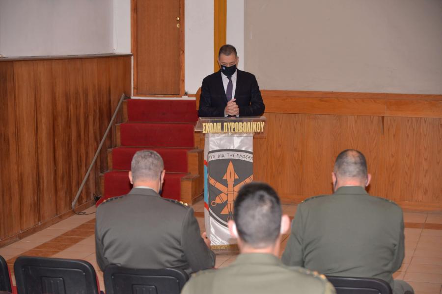 Ο Υφυπουργός Εθνικής Άμυνας Αλκιβιάδης Στεφανής, μετέβη σήμερα, Τρίτη 26 Ιανουαρίου 2021, στη Σχολή Πυροβολικού (ΣΠΒ), στη Νέα Πέραμο Αττικής.