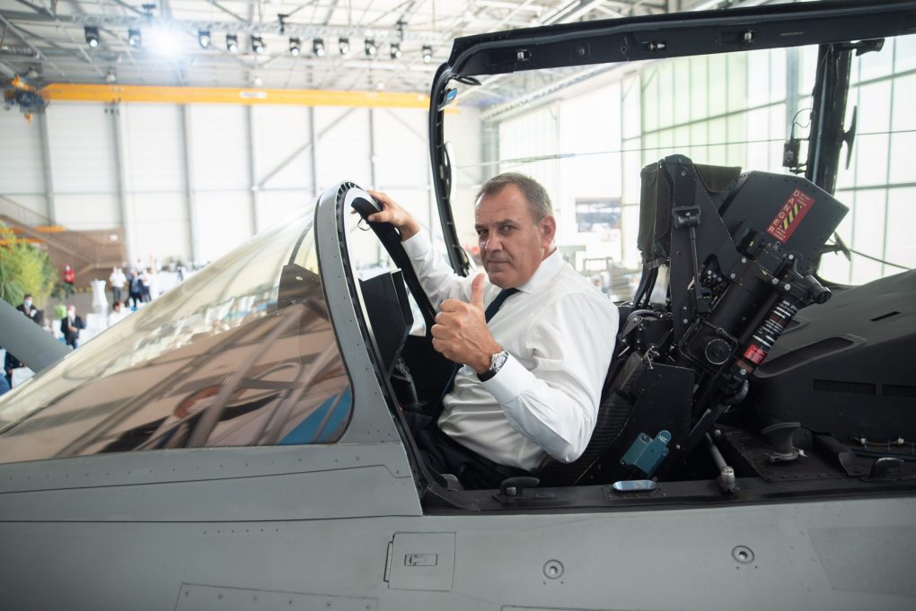 «Σήμερα έχω την ιδιαίτερη τιμή και χαρά, να ευρίσκομαι σήμερα, εδώ στις εγκαταστάσεις της “Dassault Aviation”, στην Ίστρ, μία ημέρα ορόσημο για την Ελληνική Πολεμική Αεροπορία, καθώς εντάσσονται πλέον στον στόλο της τα υπερσύγχρονα μαχητικά Αεροσκάφη “Rafale”.