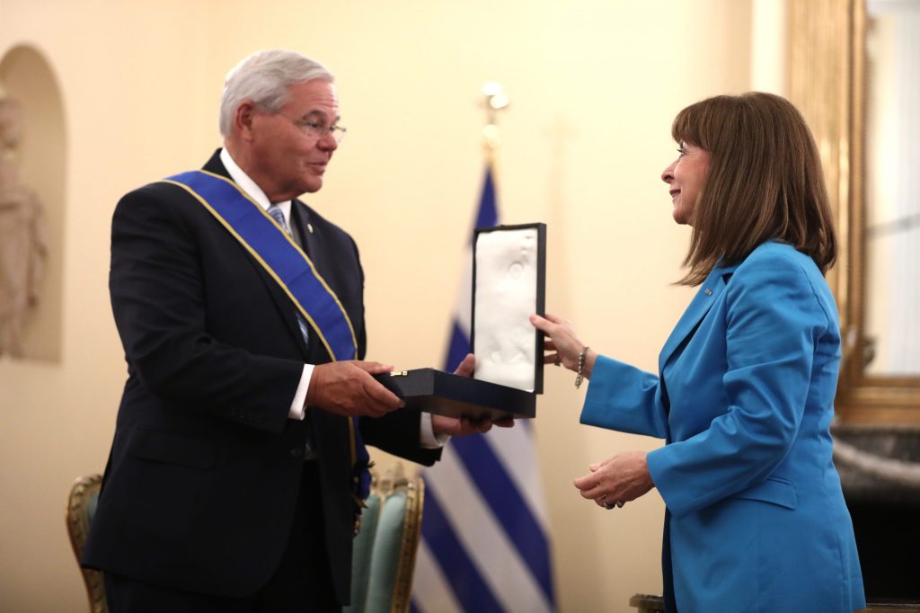 Ευχαριστήρια επιστολή στην Πρόεδρο της Ελληνικής Δημοκρατίας Αικατερίνη Σακελλαροπούλου, από τον Πρόεδρο της Επιτροπής Εξωτερικών Σχέσεων της Γερουσίας των ΗΠΑ Ρόμπερτ Μενέντεζ για την παρασημοφόρησή του με τον Μεγαλόσταυρο του Τάγματος της Τιμής κατά την επίσκεψή του στην Ελλάδα.