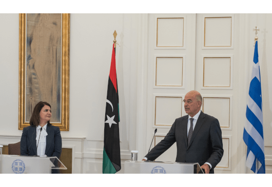 Κατά τη διάρκεια κοινής συνέντευξης Τύπου με τον υπουργό Εξωτερικών του Κουβέιτ, η υπουργός χαρακτήρισε την κίνηση ως «πολύ καλή αρχή» για την έξοδο των ξένων μαχητών από τη Λιβύη.