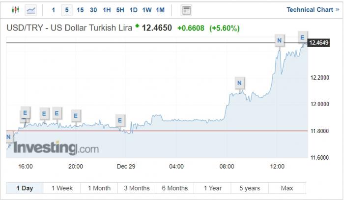 Η προσπάθειά της, όμως, όπως δείχνουν και τα συνοδευτικά διαγράμματα ήταν άκαρπη με την τουρκική λίρα να συνεχίζει να υποχωρεί τόσο έναντι του δολαρίου όσο και έναντι του ευρώ. Το νόμισμα έφθασε έως και τις 12,5 λίρες ανά δολάριο και 14,1 λίρες ανά ευρώ.