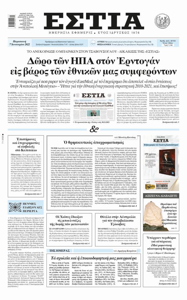 Η έγκυρη εφημερίδα «Εστία» το είχε πρωτοσέλιδο χθες Παρασκευή: