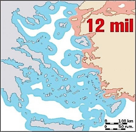 Πρόκειται για δύο χάρτες που παρουσιάζουν το σενάριο ανάλογα με την επέκταση των ελληνικών χωρικών υδάτων στα 6 και τα 12 μίλια και προπαγανδίζουν τις τουρκικές αξιώσεις για αποστρατιωτικοποίηση αλλά ακόμα και την αμφισβήτηση της κυριαρχίας ελληνικών νησιών, όπως διαβάζουμε στον ΣΚΑΙ.