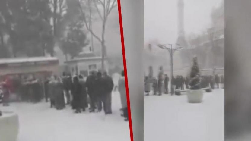 Στους -5 βαθμούς στην περιοχή Σουλτάντσιφλιγί ο κόσμος περιμένει υπομονετικά για να αγοράσει φτηνό ψωμί από το περίπτερο του δήμου Κωνσταντινούπολης ….