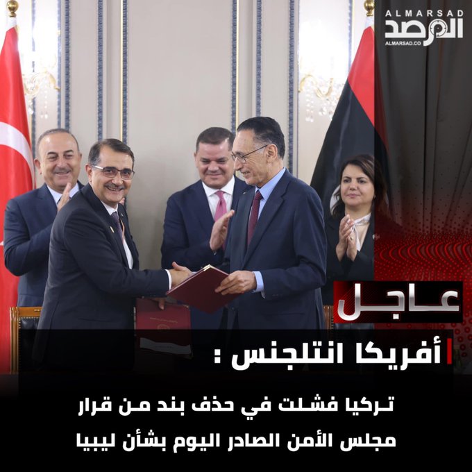 عاجل > افريكا انتلجنس : تركيا فشلت في حذف بند من قرار مجلس الأمن الصادر اليوم بشأن #ليبيا. 4/1