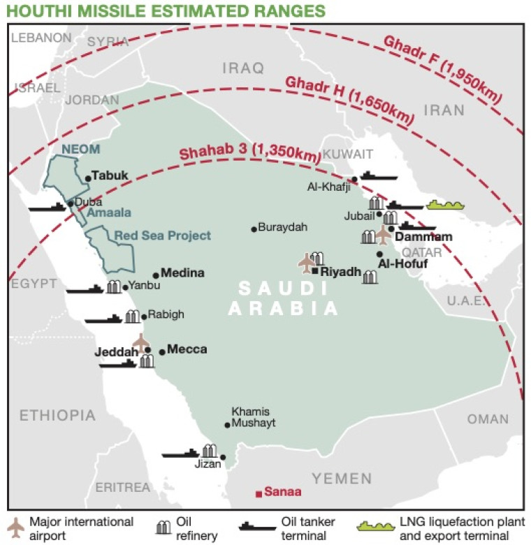 Η αναχαίτιση του πυραύλου που φέρονται να εκτόξευσαν οι αντάρτες που υποστηρίζει το Ιράν, λέγεται πως έχει λάβει χώρα στα βορειοδυτικά της Σαουδικής Αραβίας κοντά στα σύνορά της με την Ιορδανία.