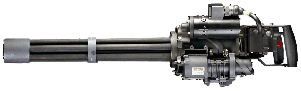 Ένα από αυτά είναι το πανίσχυρο, αμερικανικό περιστροφικό πυροβόλο των 7,62 mm προδιαγραφών ΝΑΤΟ M134 minnigan, με έξι κάννες και υψηλό ρυθμό βολής (2.000 έως 6.000 βολές ανά λεπτό), περιστρεφόμενο σύστημα κάνης τύπου Gatling με εξωτερική πηγή ενέργειας συνήθως ή ηλεκτροκινητήρα.