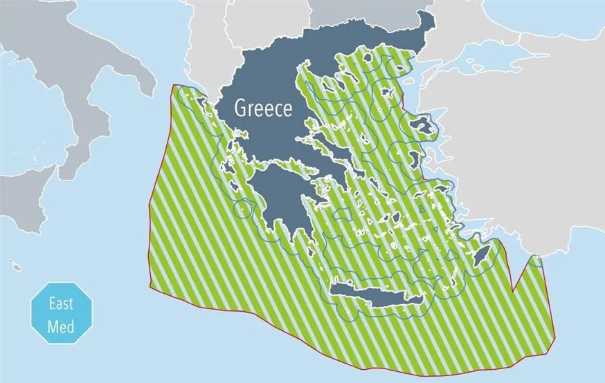 Η φωτογραφία της Υπηρεσίας Θαλάσσιου Χωροταξικού Σχεδιασμού (ΘΧΣ) της ΕΕ, που πυροδότησε την «έκρηξη» της τουρκικής πλευράς, παρουσιάζει τα ελληνικά χωρικά ύδατα στα 12 ναυτικά μίλια στο Αιγαίο, ενώ αποτυπώνει και τα δυνητικά όρια της ελληνικής ΑΟΖ, τα οποία εκτείνονται έως τις τουρκικές ακτές στην Ανατολική Μεσόγειο, σύμφωνα με το Έθνος και τη Μαρία Ζαχαράκη.